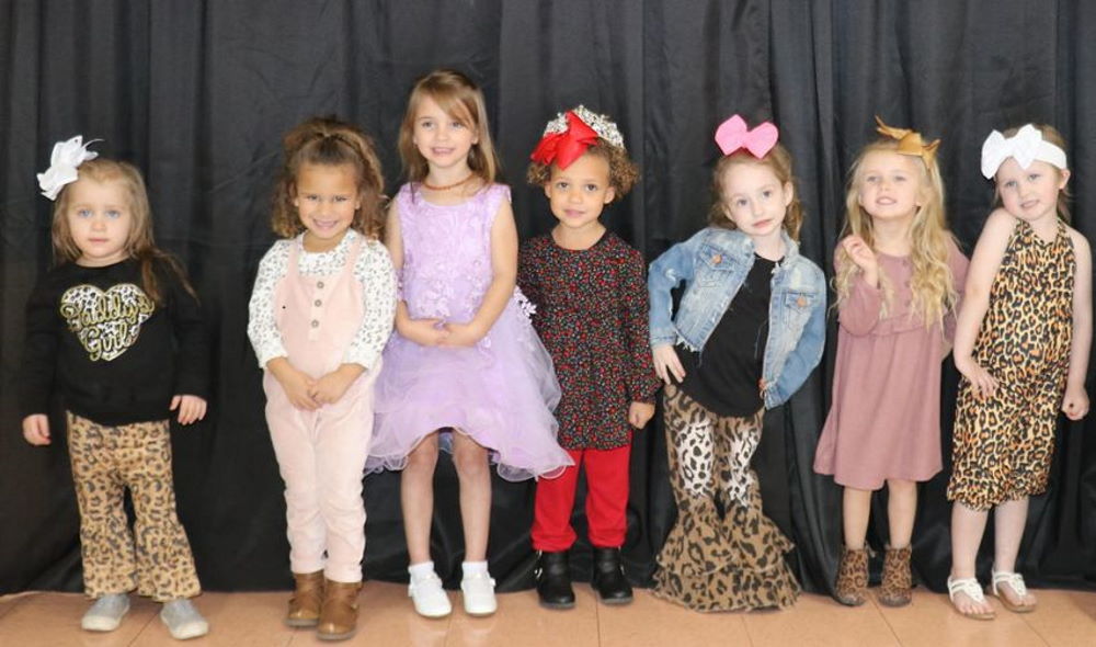 Tiny Miss Contestants for 2022 at the Pageant - Avery Vera, Kinslee Minton, Emyia Stephens, Alyssa Mitchell, Paisley McClure, Kailey Moore, Elizabeth Wade.
